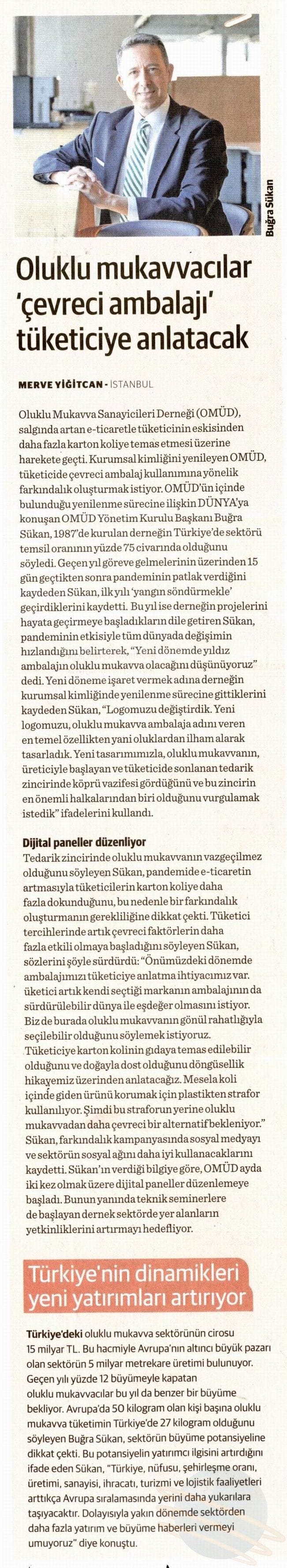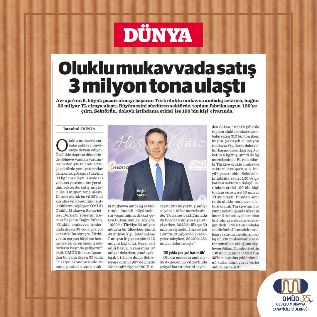 Genlerinde sürdürülebilirlik olan oluklu mukavva sektör temsilcisi Oluklu Mukavva Üreticileri Derneği (OMÜD) ile Avrupa Yeşil Mutabakatı’nın önemine yönelik gündem çalışmaları gerçekleştirdik. Sürdürülebilirliğin toplumsal olarak yaygınlaşması ve sektörün bu alanda yarattığı değerlerin geniş kitlelere aktarılmasını sağladık.